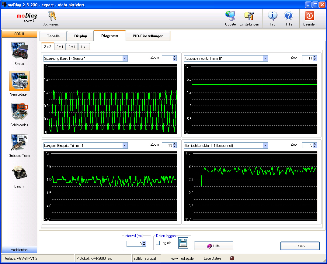 Mit moDiag expert können Sie die Livedaten des Fahrzeugs nicht nur visualisieren, sondern auch als CSV-Datei aufzeichnen und später mit einer Tabellenkalkulation auswerten.